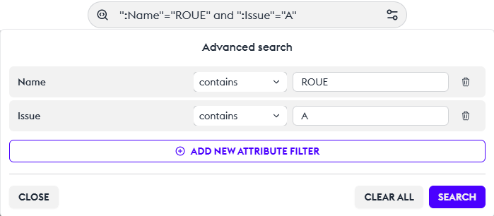 You can choose exact or contained results, and you can add filters by “issue,” “date” or any information from the metadata. Each search is saved in the history.
