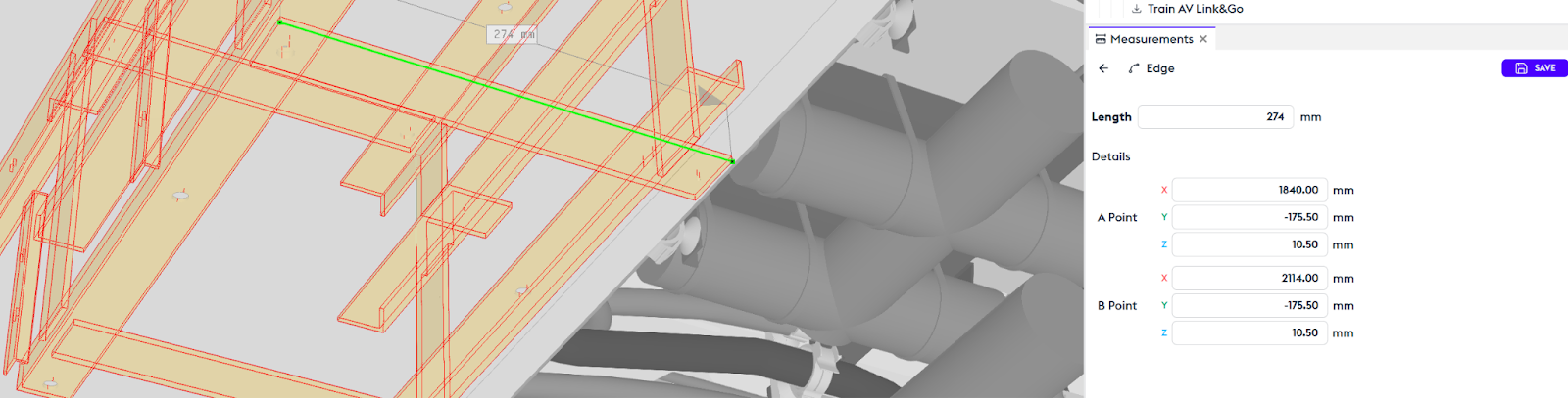 From this step or via a right-click on the annotation, you can choose to zoom in on this point in the 3D view (“Fit to screen“), move the annotation to a chosen location (“Edit measurement leader line“), copy the value as text (“Copy measurement“), or delete the measurement (“Delete“).