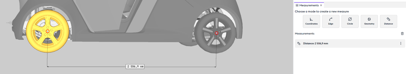 The Coordinates tool allows you to view the position of a point in space — these are the 3D coordinates relative to the origin (zero point). Selecting this point creates an annotation in the 3D view and a corresponding step in the measurement panel.