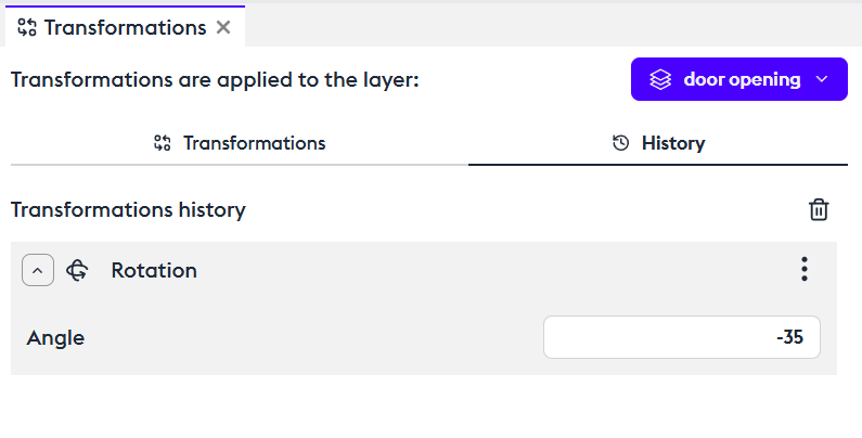 At the end of the manipulation, you can modify the angular value in the panel. The rotation will then be updated.